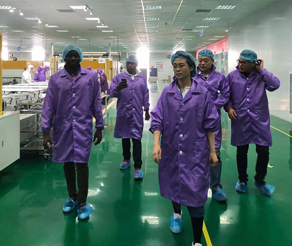 4月25日,我們就迎來了兩位加納的客人,我們這兩位加納客人中文也是非常的溜,還能彪兩句方言呢!在愉悅的氣氛當中,我們業務部李經理,陪同我們遠道而來的加納的客人,首先參觀了廠區的展廳,了解了公司的成立、發展以及未來的發展方向,觀摩了產品展示區的組件產品以及微電站。緊接著,又來到了車間,李經理系統詳細的給加納客人介紹了我們的復合型生產線的特點及優勢,加納客人也饒有興致地詢問了很多問題。