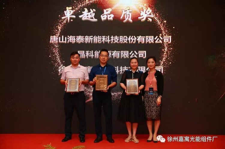 作為國內*具規模的雙玻組件生產基地,嘉寓光能的雙玻組件榮獲組委會頒發的“卓越品質獎”。