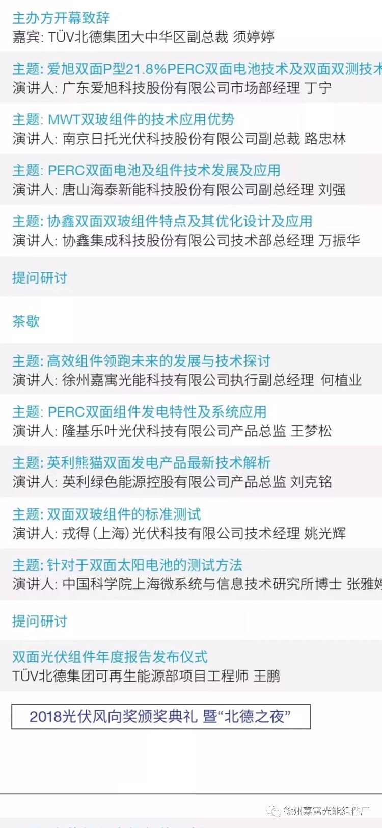 此次會議光伏界的技術精英們齊聚一堂,共同交流探討光伏產品技術層面的高精尖技術,圍繞如何更高*的提高產品的效率、環境適應性及耐久性,高效雙玻組件未來的發展與應用進行了深層次的交流