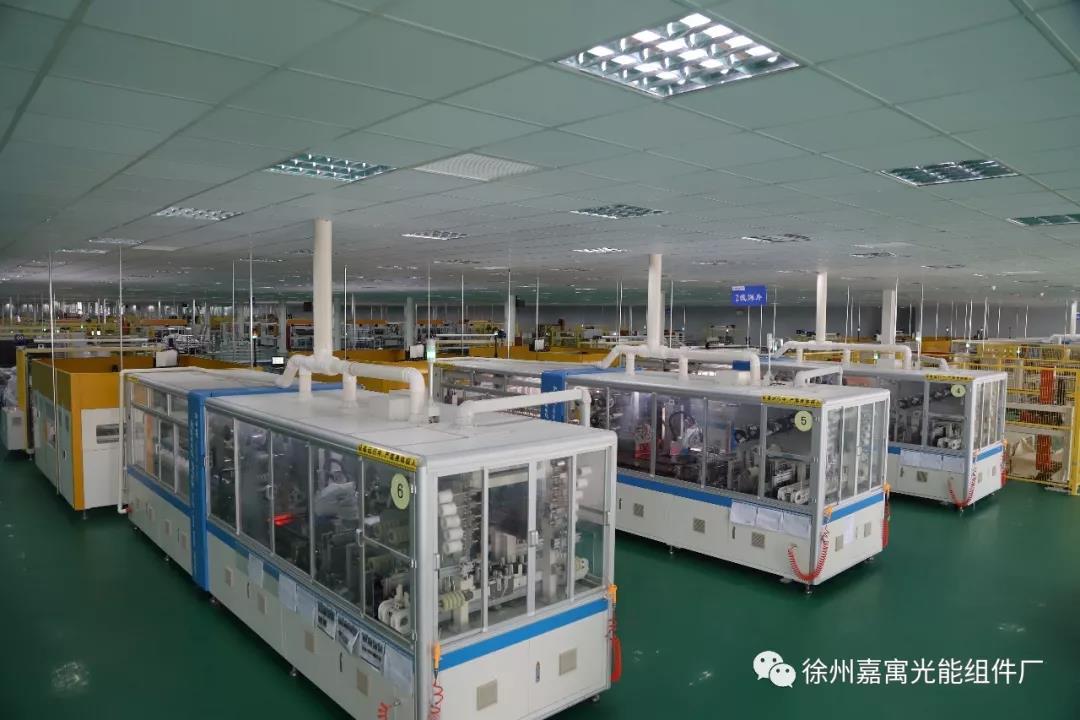徐州嘉寓光能公司于 2017年9 月開始建廠籌備,包括廠區設計與組件生產設備評估,2017年10 月開始基建施工,車間廠房的裝修以及自動化生產線的進場安裝與調試,至2017年12月25日 一期 500MW 正式量產,整體歷時約4個月。