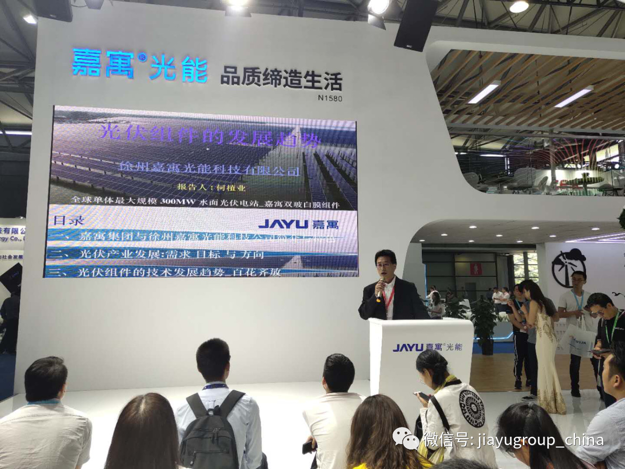 當天14時,嘉寓光能執行副總何植業發表權*主題演講——光伏組件發展趨勢。